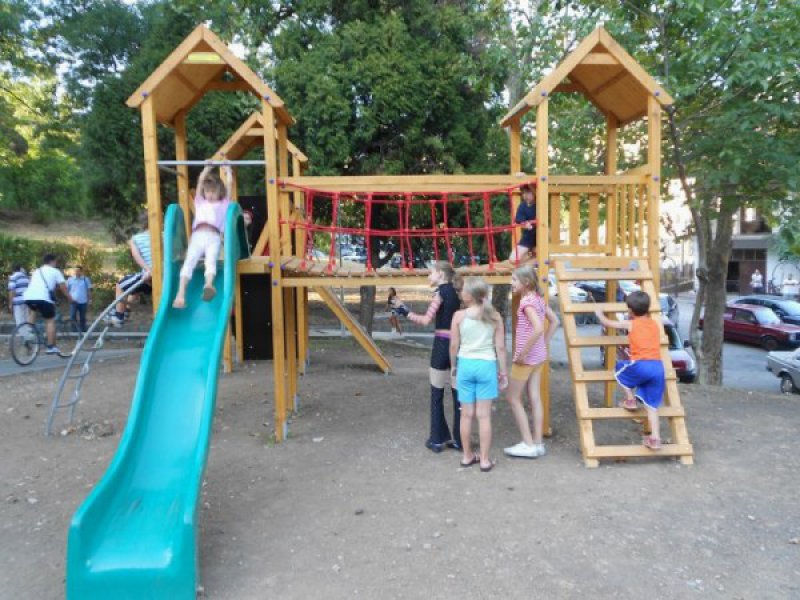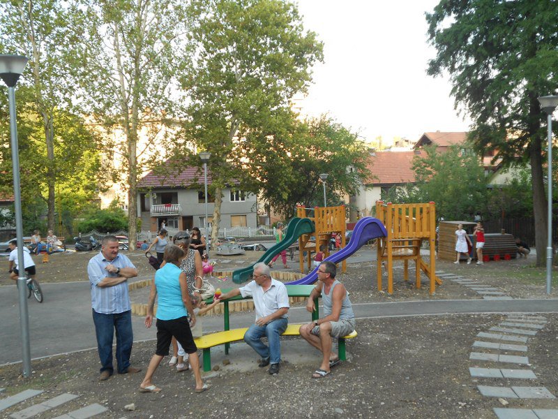 - igralište za djecu uređeno kao zelena površina, sa sljedećim sadržajima: ljuljaške, klackalice, vrtuljak, penjalica-tunel, piramide i tobogani sa pješčanikom.