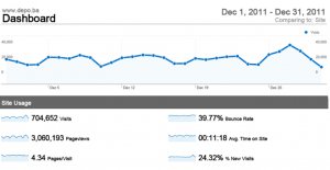 Jedino mi pokrivamo cijelu Bosnu i Hercegovinu Podaci iz mjeseca decembra pokazuju da se medijska mreža DEPO PORTAL/BLIN MAGAZIN učvrstila na trećem mjestu u BiH po broju posjetalaca, uz stalni trend rasta. Poseban kvalitet naših medija leži u činjenici da nas je publika u BiH prepoznala kao svoje i da ...