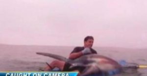 Golim rukama uhvatio morskog psa dugog 2,5 metra! ... Iako se bavi ekstremnim ribolovom i navikao je da iz svog malenog kajaka hvata velike ribe, David Saldamando ipak se nije nadao kako će se golim rukama boriti s 2,5 metara dugim morskim psom. I završiti u moru. POGLEDAJTE VIDEO!