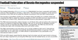 FIFA i UEFA zvanično potvrdile suspenziju Fudbalsk... Fudbalski savez Bosne i Hercegovine je suspendovan, objavljeno je na zvaničnoj internet stranice Evropske fudbalske federacije.